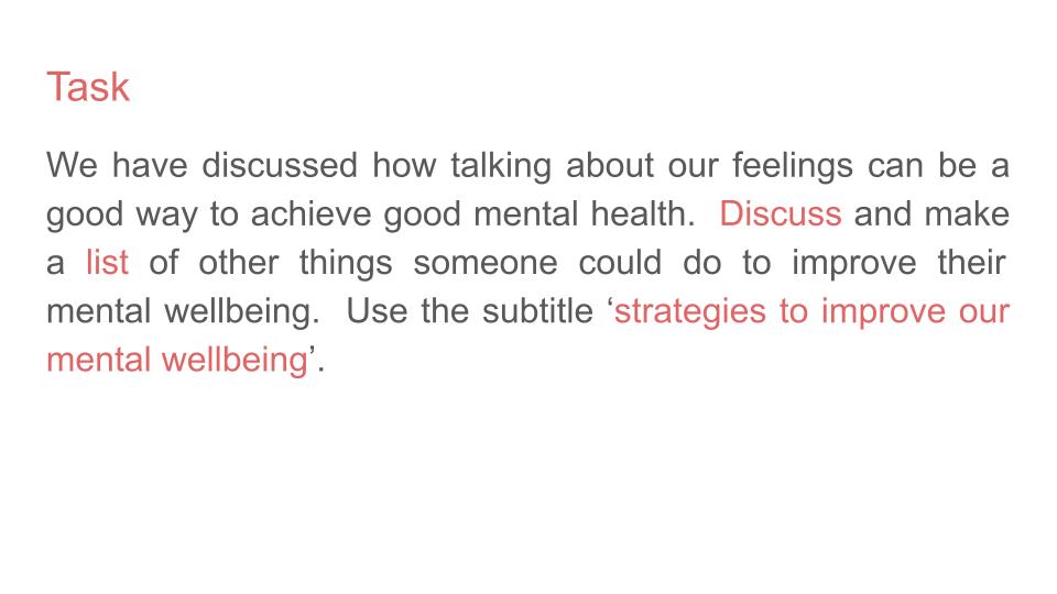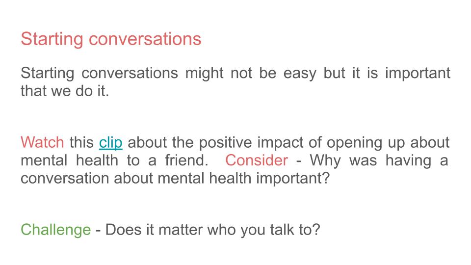 Time to Talk Day Lesson or tutorial resource on mental health. This Time to Talk Day resource looks at why talking about our feelings can be difficult, how to encourage and support a friend on Time to Talk Day and the benefits of talking about our feelings and mental health.