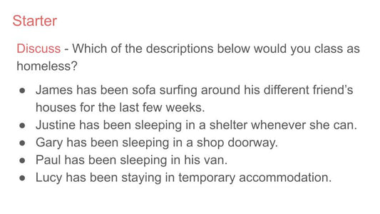 Homelessness PSHE / Citizenship Lesson